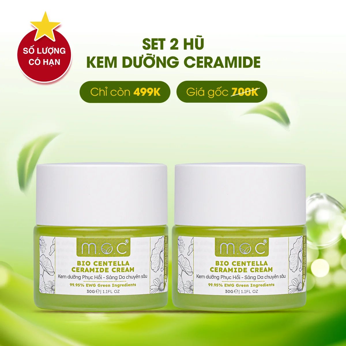 Kem Dưỡng Bio Centella Ceramide là một sản phẩm của Bộ chăm sóc da Rau Má Lên Men của Nhà M.O.C giúp Phục hồi, Căng mịn, Dưỡng sáng da chuyên sâu. Với bảng thành phần xanh đạt 99.95% EWG Green Ingredients, thuộc thang điểm 1-2 của Tổ chức môi trường thế giới EWG (https://www.ewg.org), là món ăn healthy cho mọi làn da.