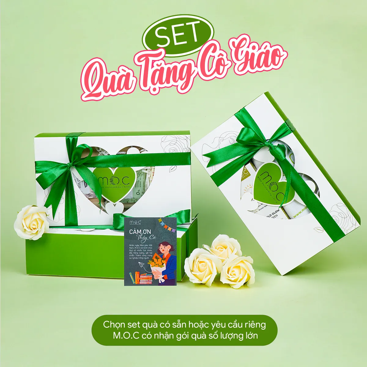M.O.C tự hào được đồng hành cùng bạn qua những set quà tặng 20/11 được chăm chút kỹ lưỡng – những “trợ lý” mỹ phẩm Xanh dịu lành, giúp cô giáo thêm rạng rỡ và tự tin trên hành trình lan tỏa tri thức: